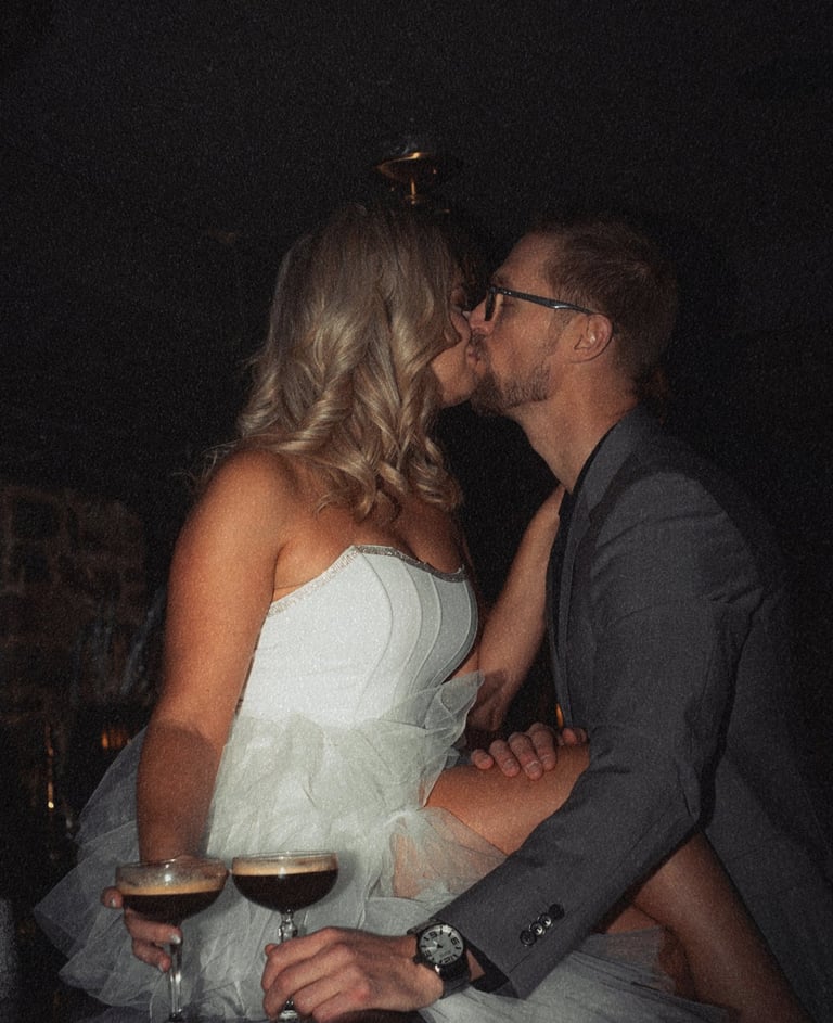 They then had a beautiful outdoor ceremony right next to the lake on a hill. They walked down the aisle together dancing and finished with their secret handshake. Afterwards, we went into the reception space where the fun was about to level up. There were multiple surprises such as well-thought-out entrances, push-up competitions, magic tricks, and a train of family members wearing shirts with Dave's face on them. After speeches, food, and fun, we all went outside where they shared their first dance under the full moon and sparklers. Then it was back inside to close the night out with some partying and dancing. Dave surprised everyone by joining the live band on stage, playing drums while his brother sang.